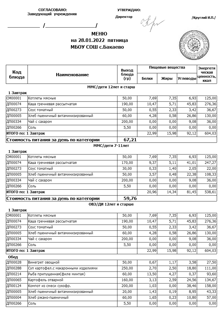 (Меню на 28.01.2022г)