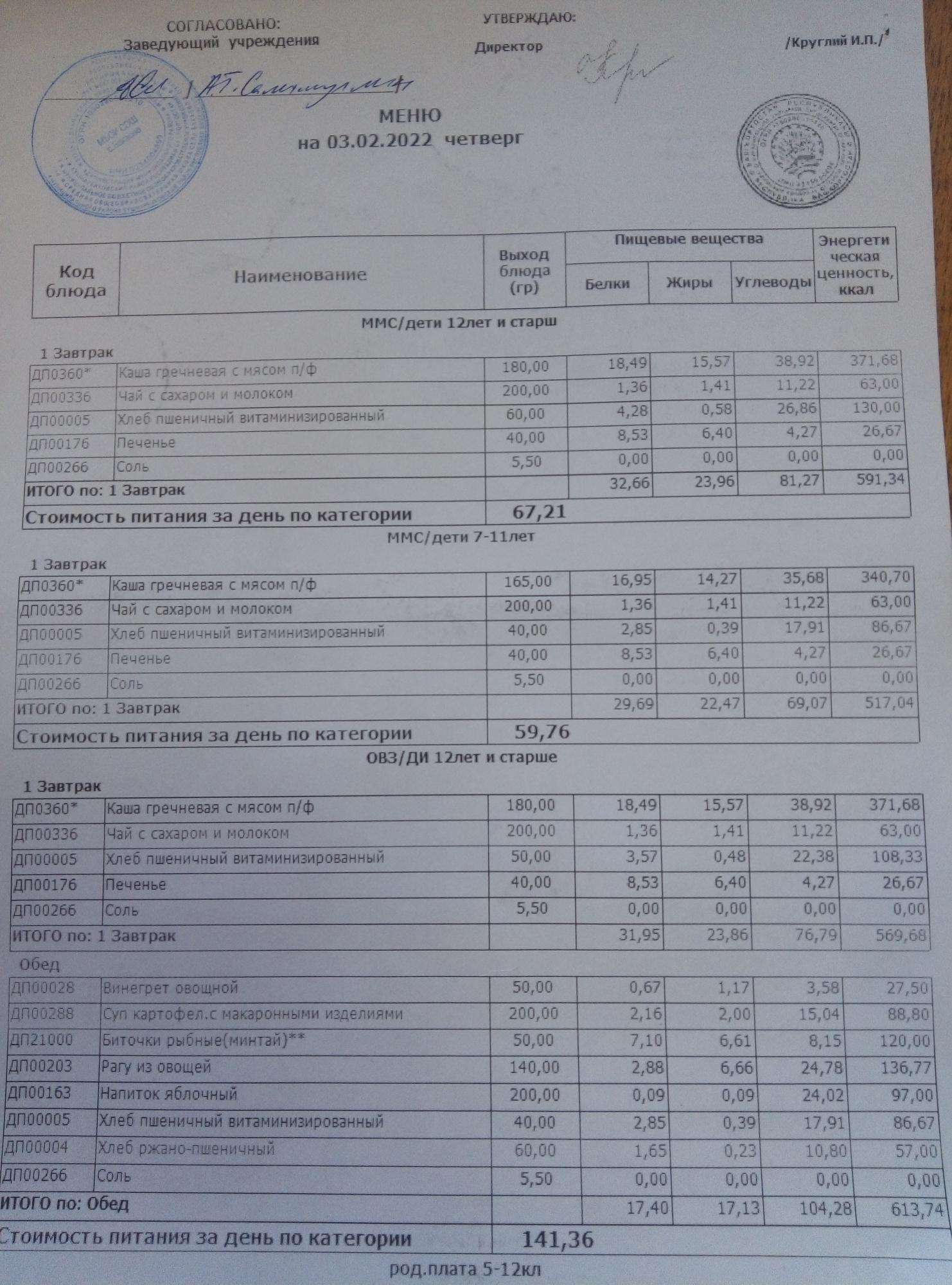 (Меню на 03.02.2022г)