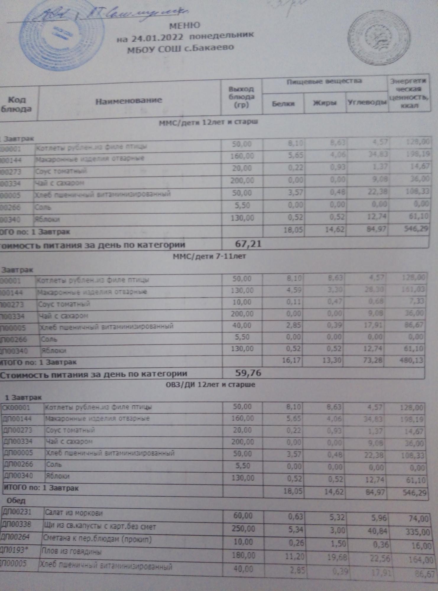(Меню на 24.01.2022г)