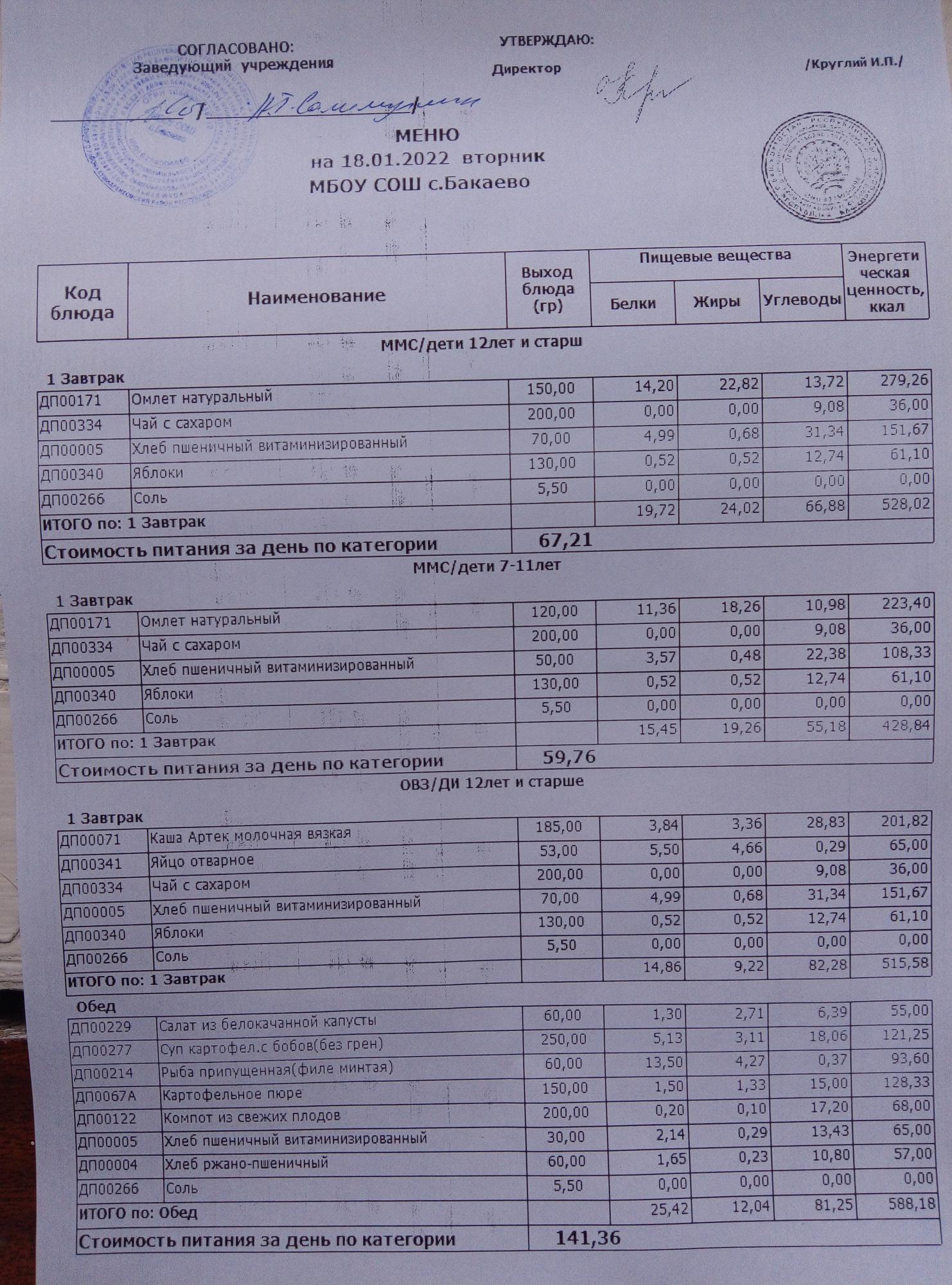 (Меню на 18.01.2022г.)