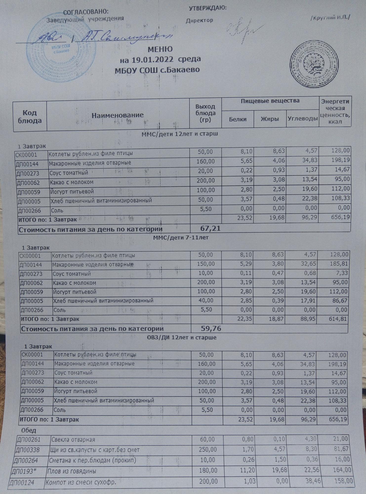 (Меню на 19.01.2022г)
