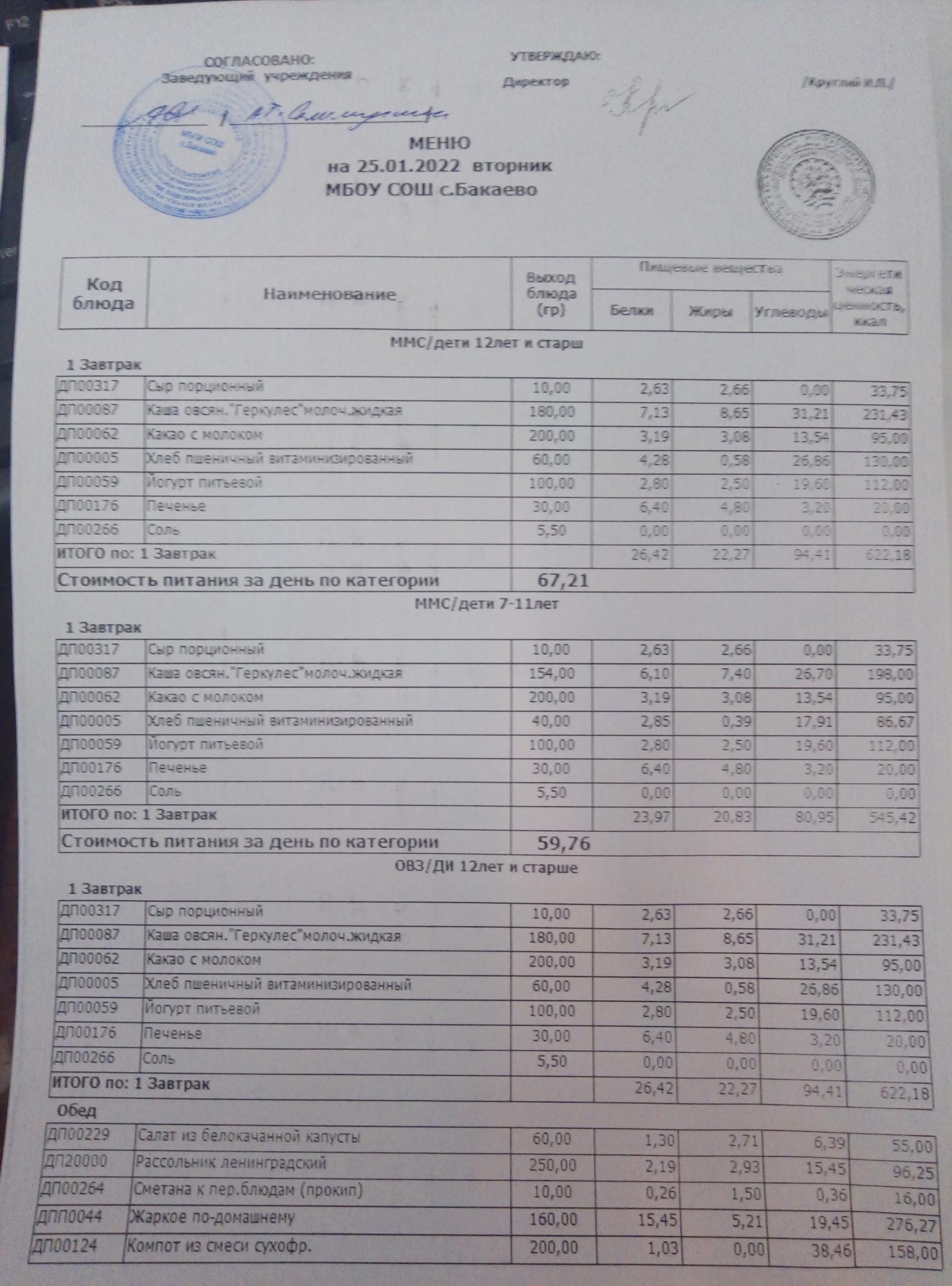 (Меню на 25.01.2022г)