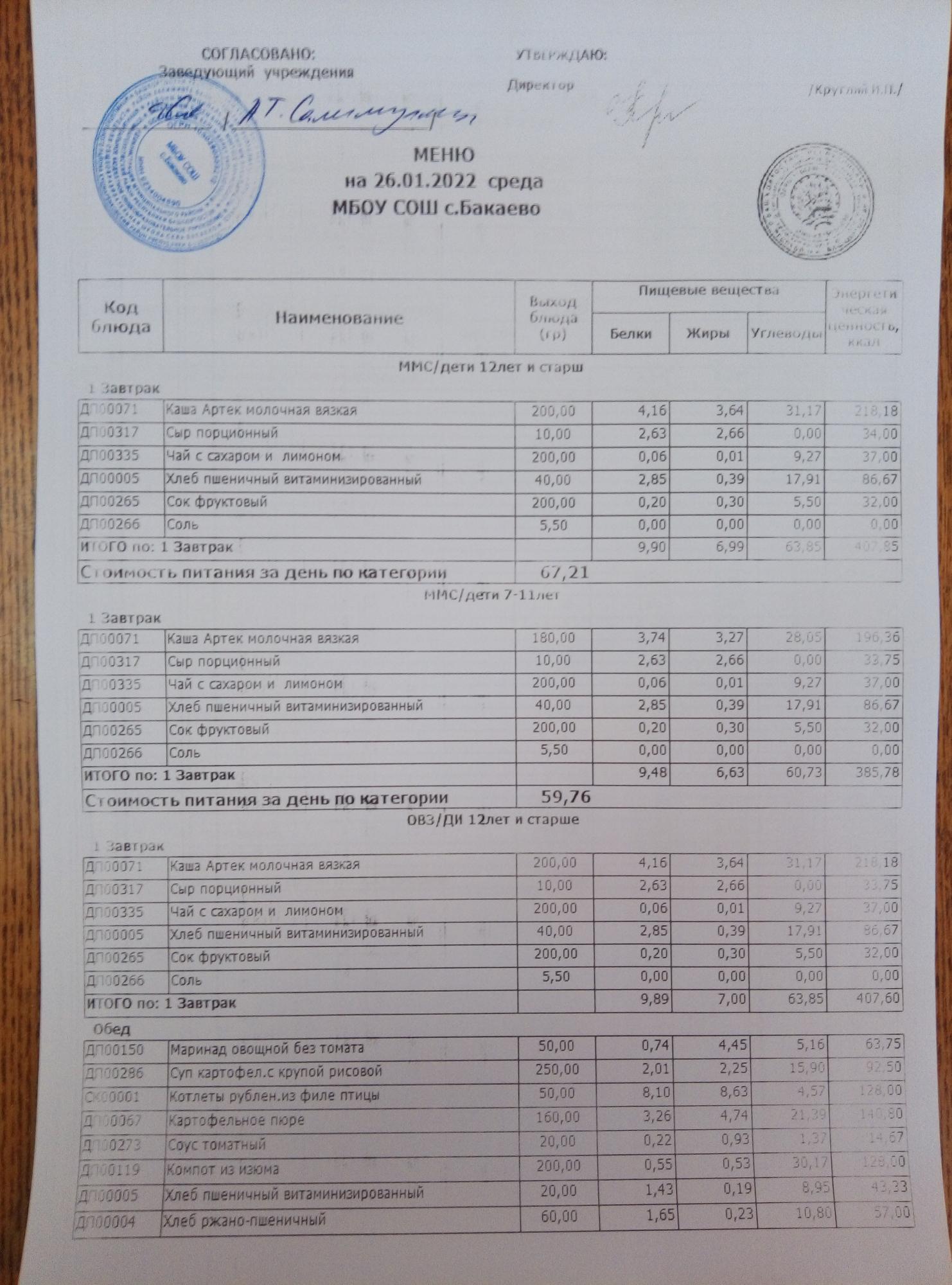 (Меню на 26.01.2022г)