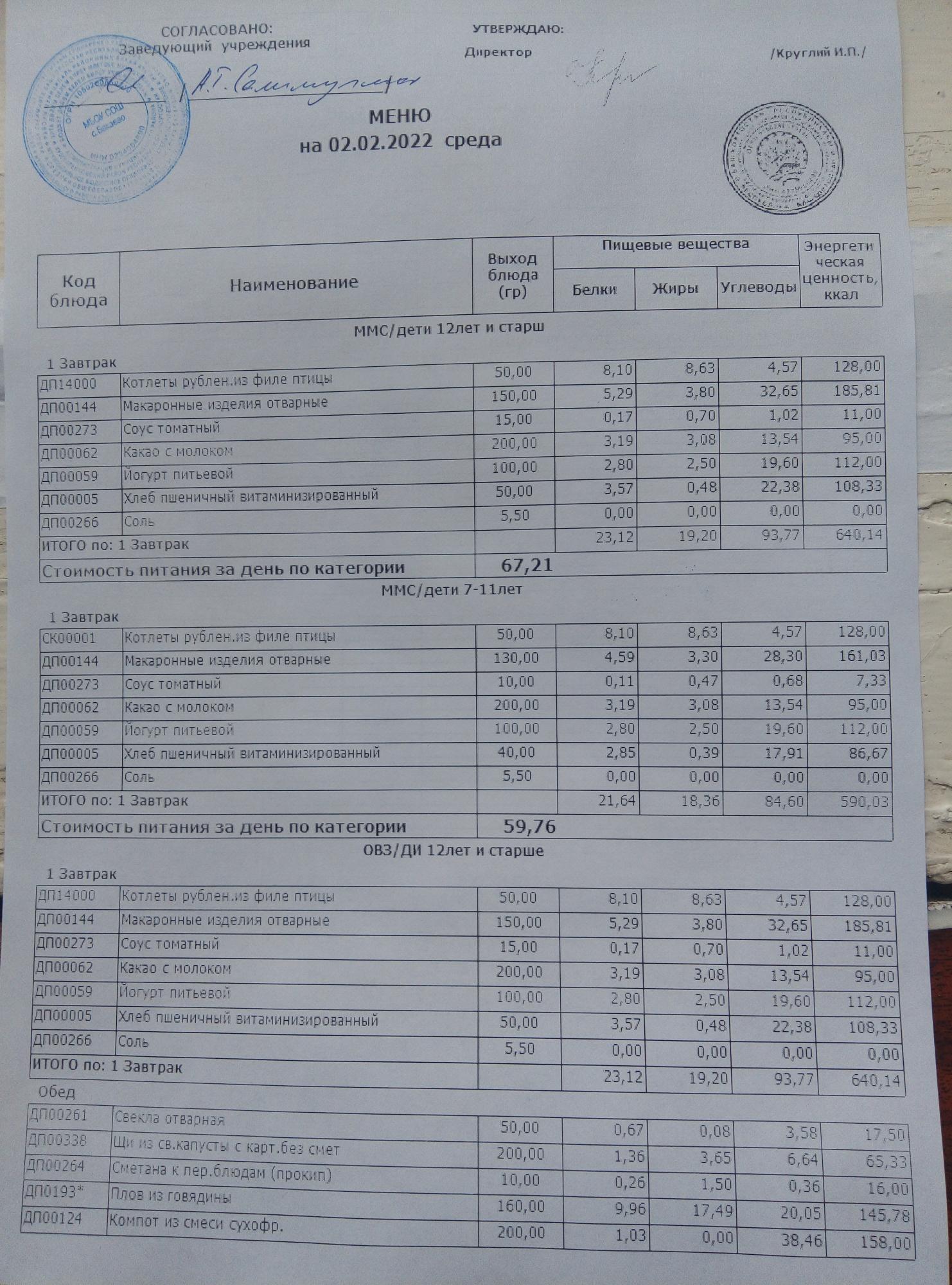 (меню на 02.02.2022г)
