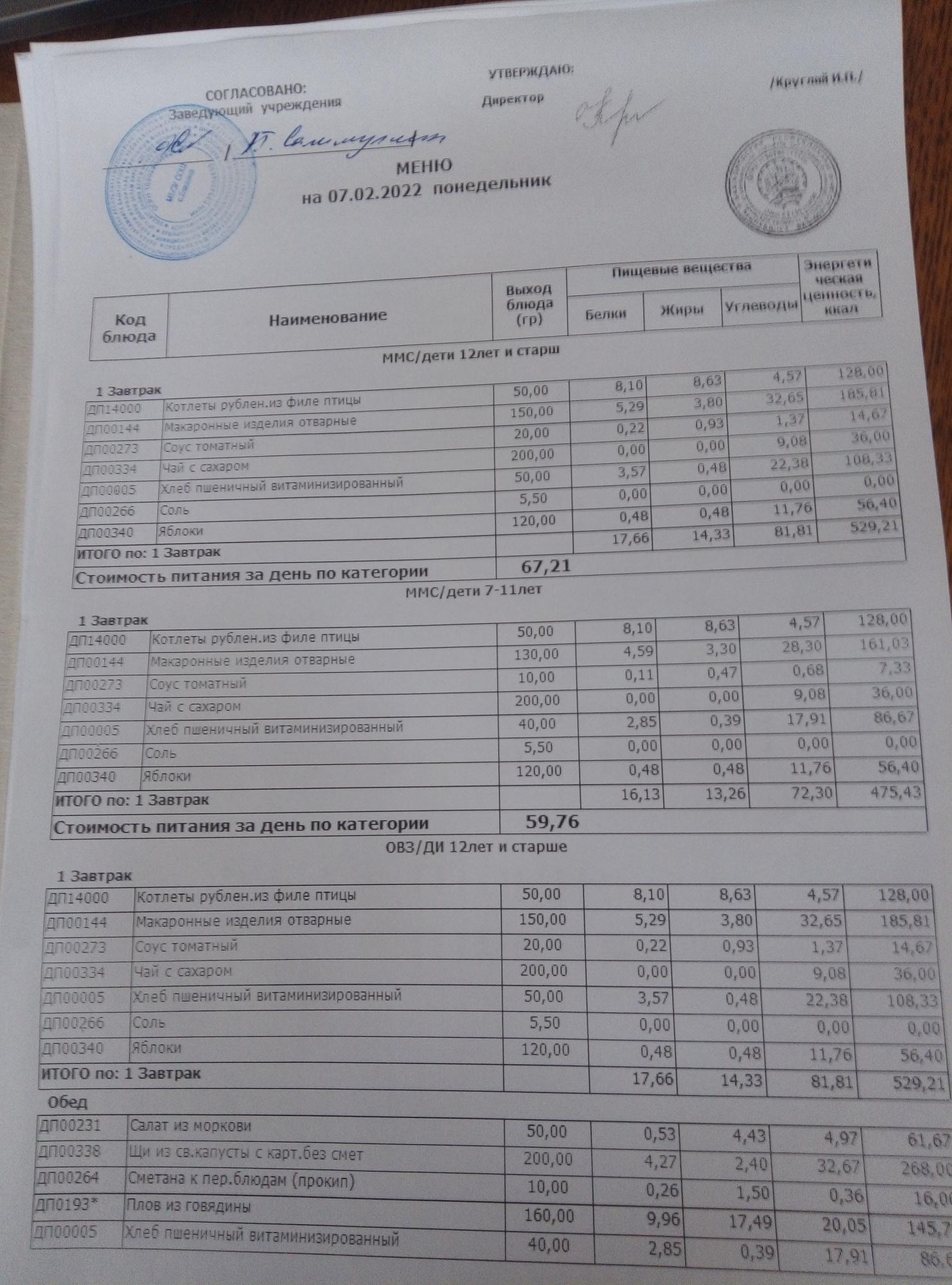 (Меню на 07.02.2022г)