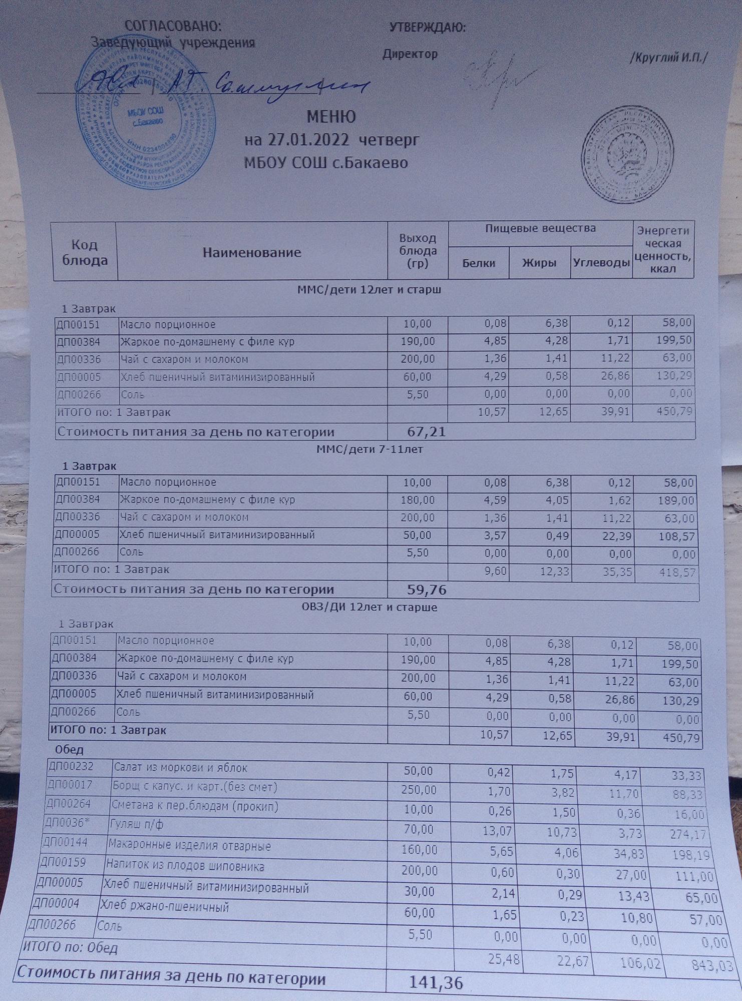 (Меню на 27.01.2022г)