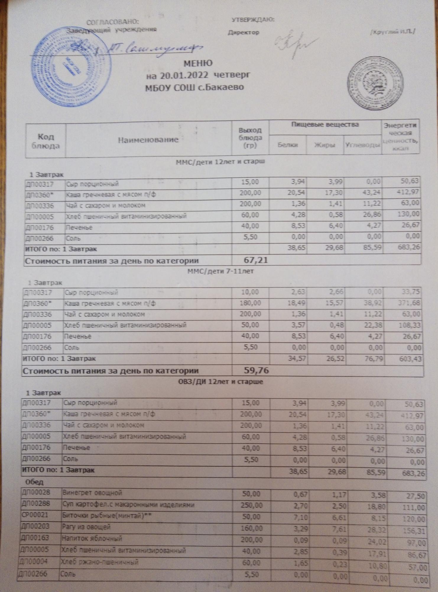 (Меню на 20.01.2022г)