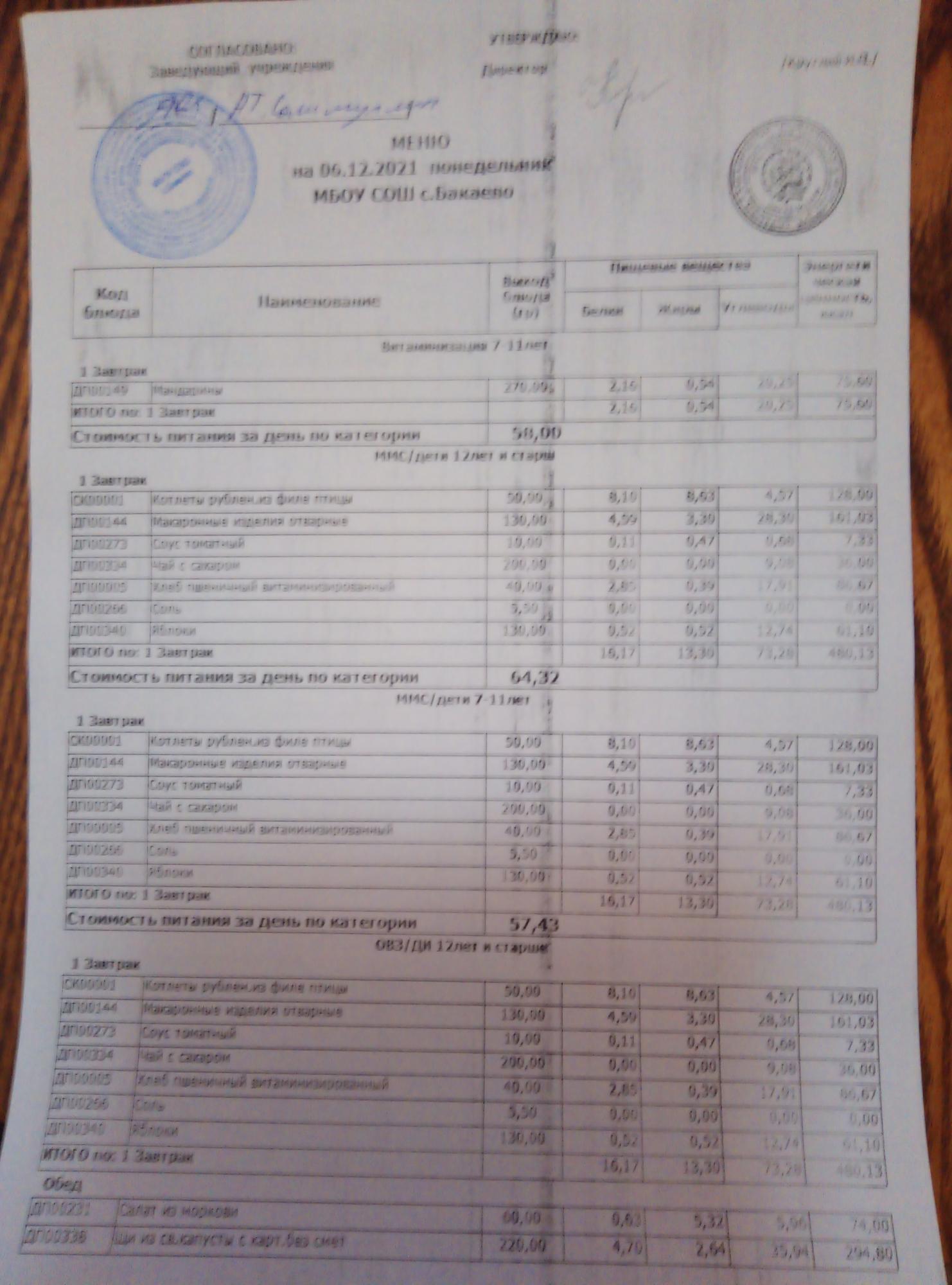 (Меню на 06.12.2021г)