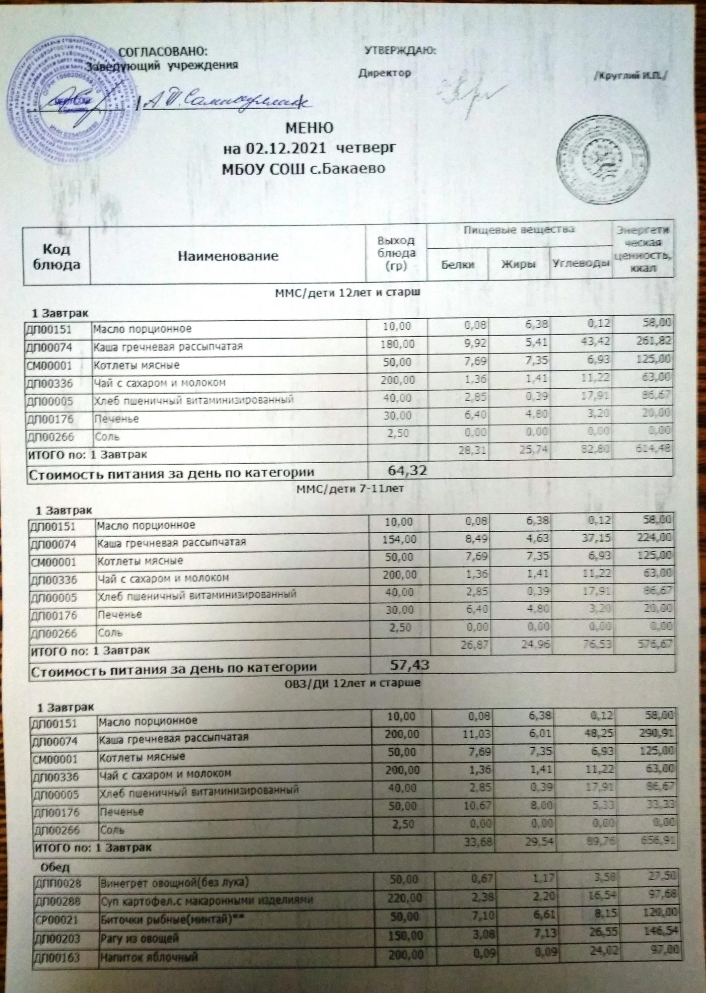 (Меню на 02.12.2021г)