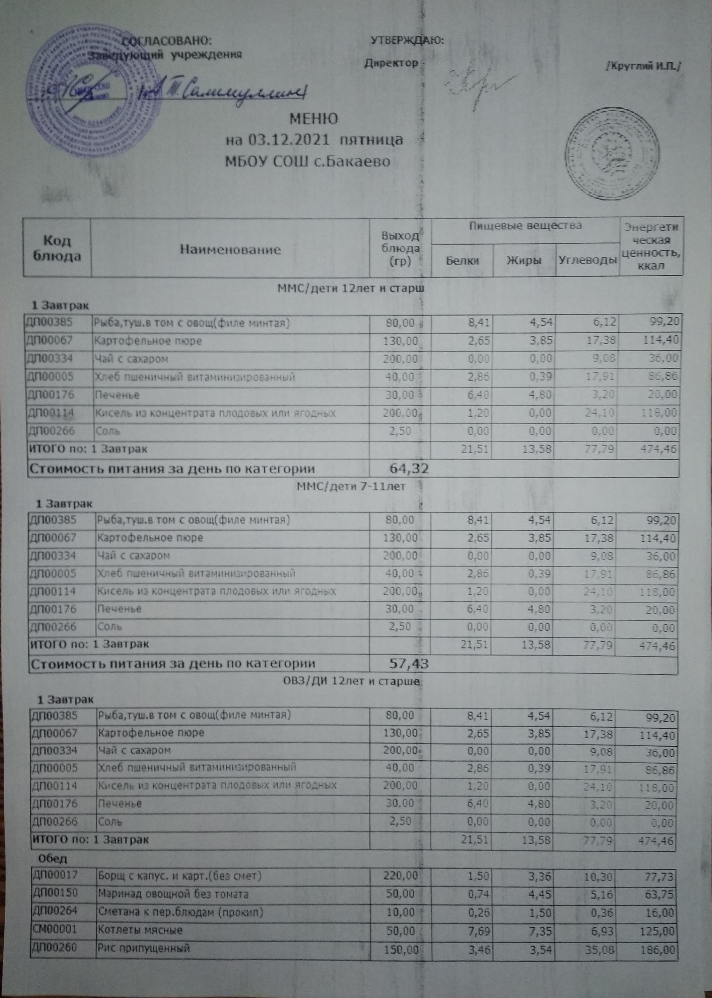 (Меню на 03.12.2021г)