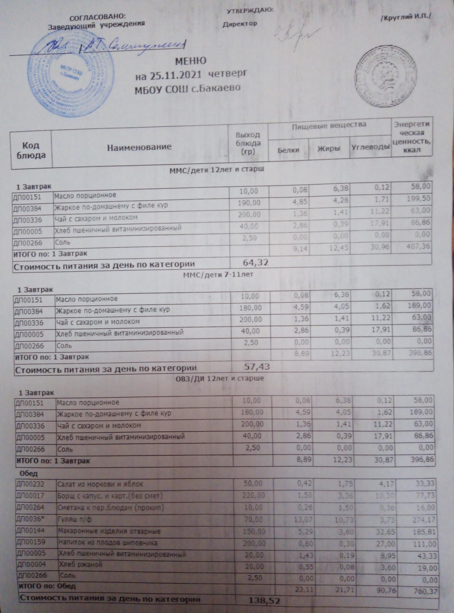 (Меню на 25.11.2021г)