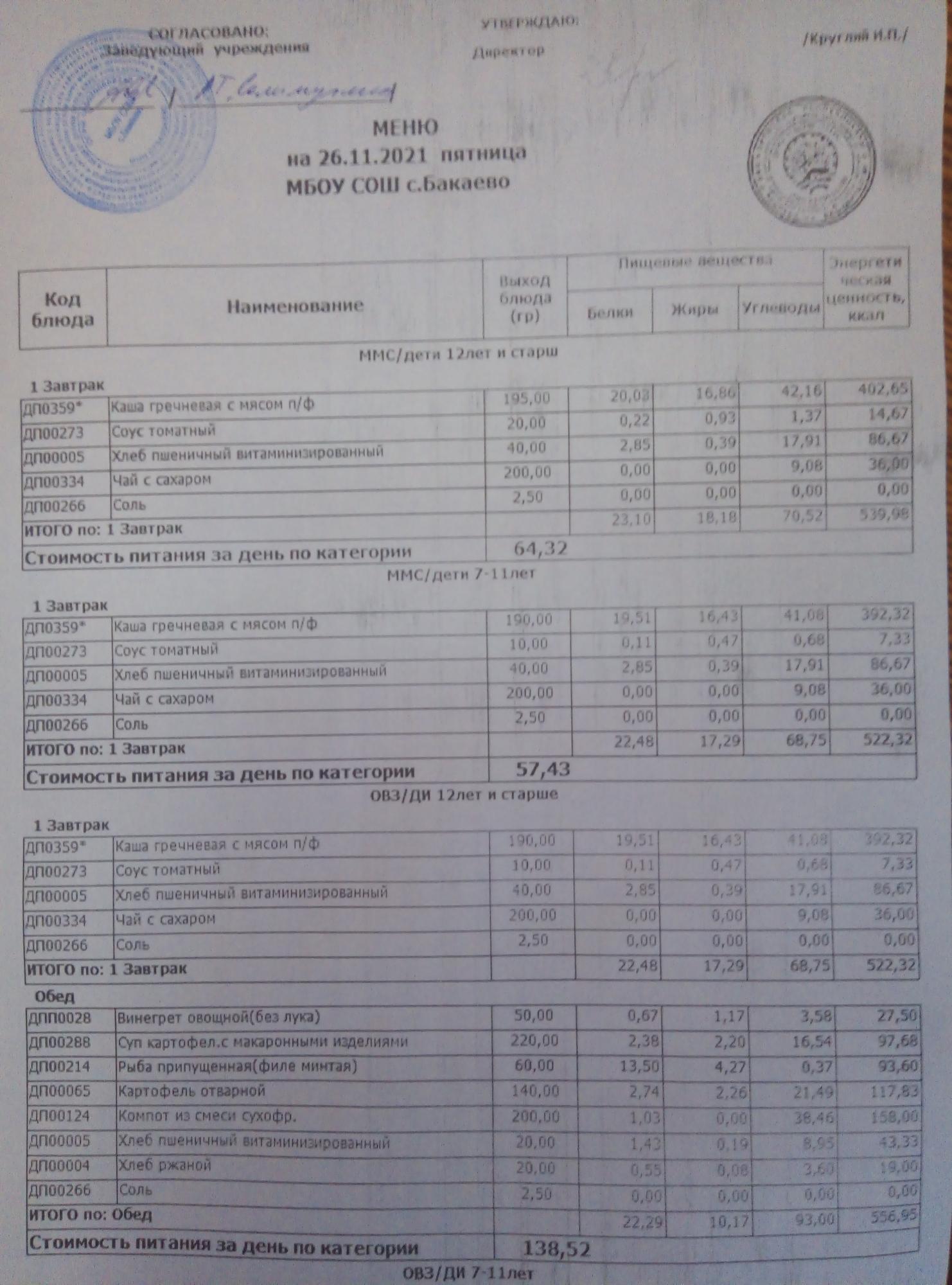(Меню на 26.11.2021г)