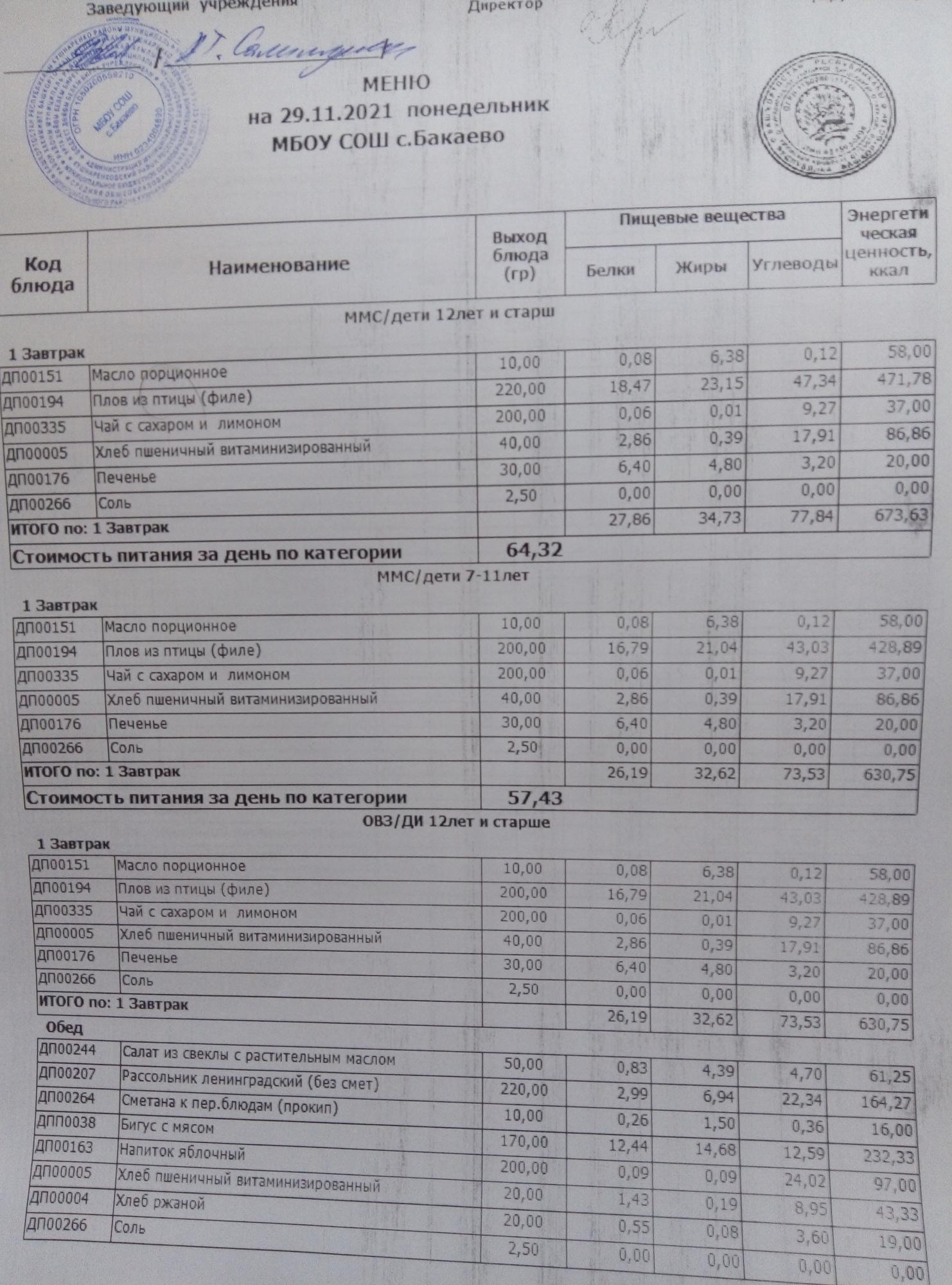 (Меню на 30.11.2021г)