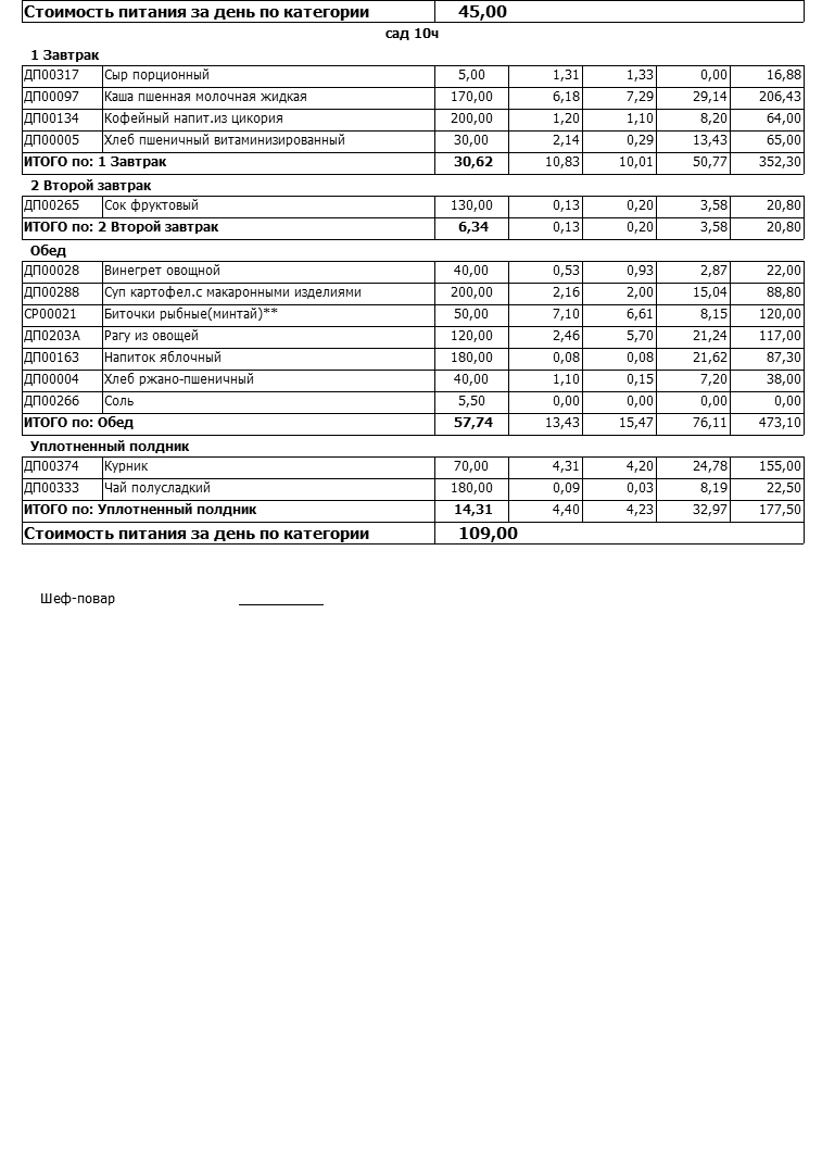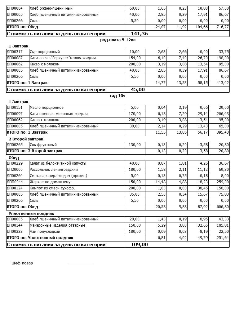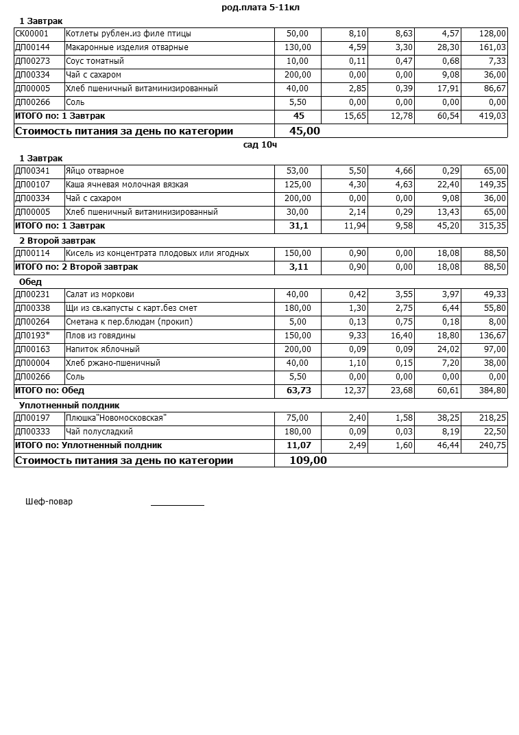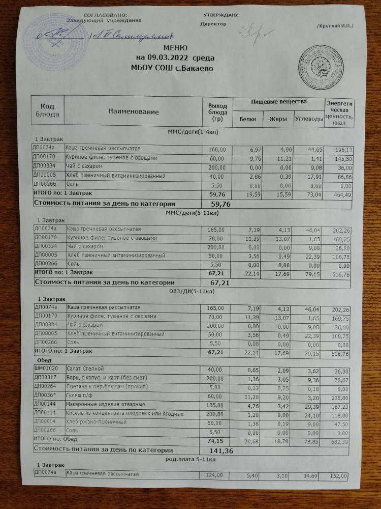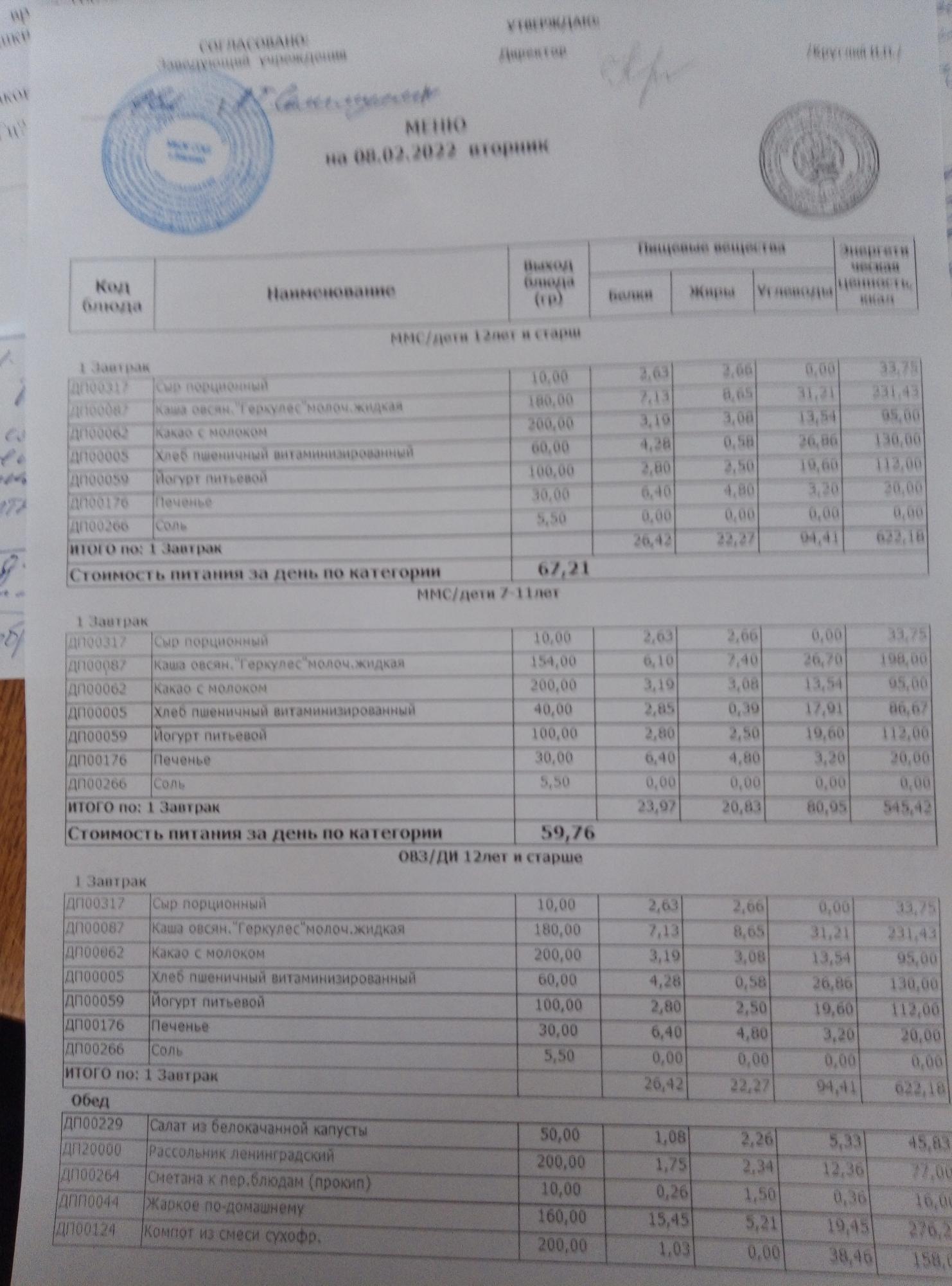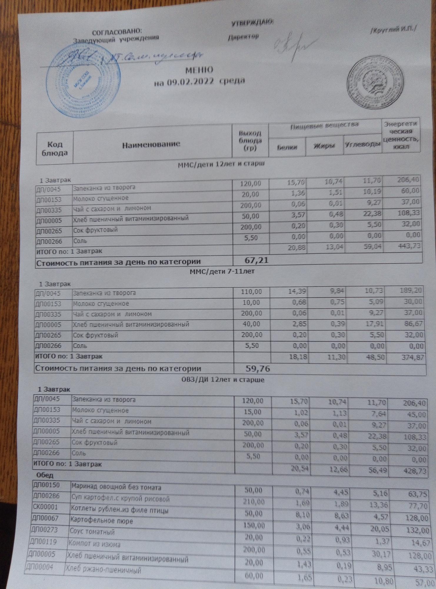 (Меню на 09.02.2022г)