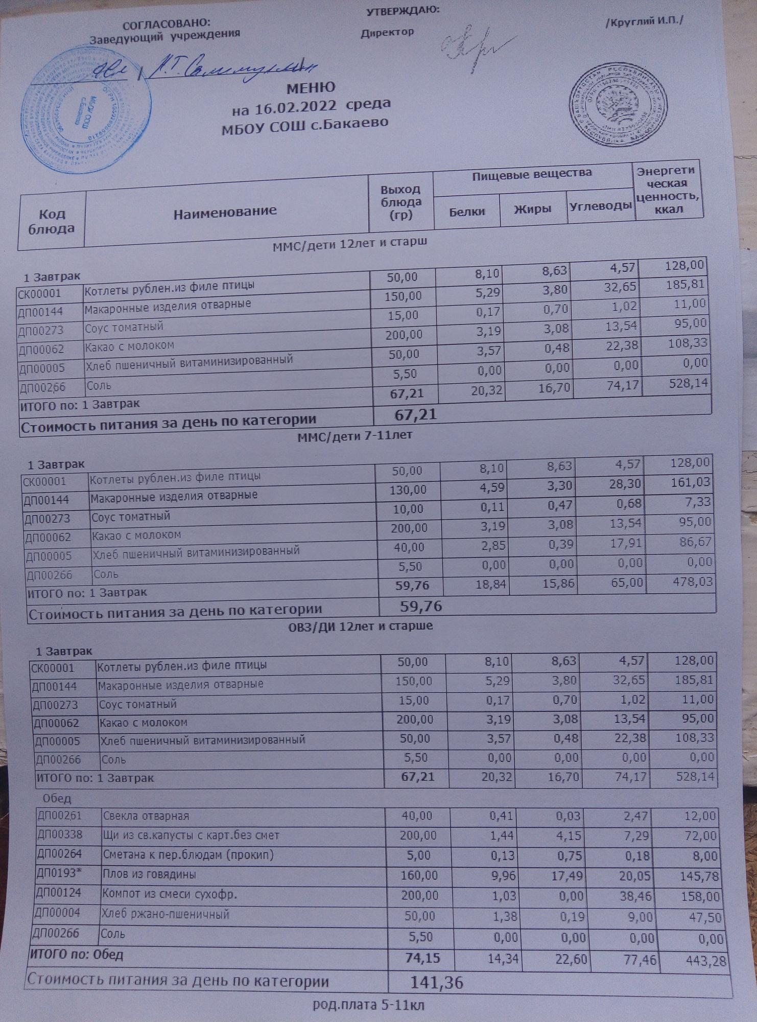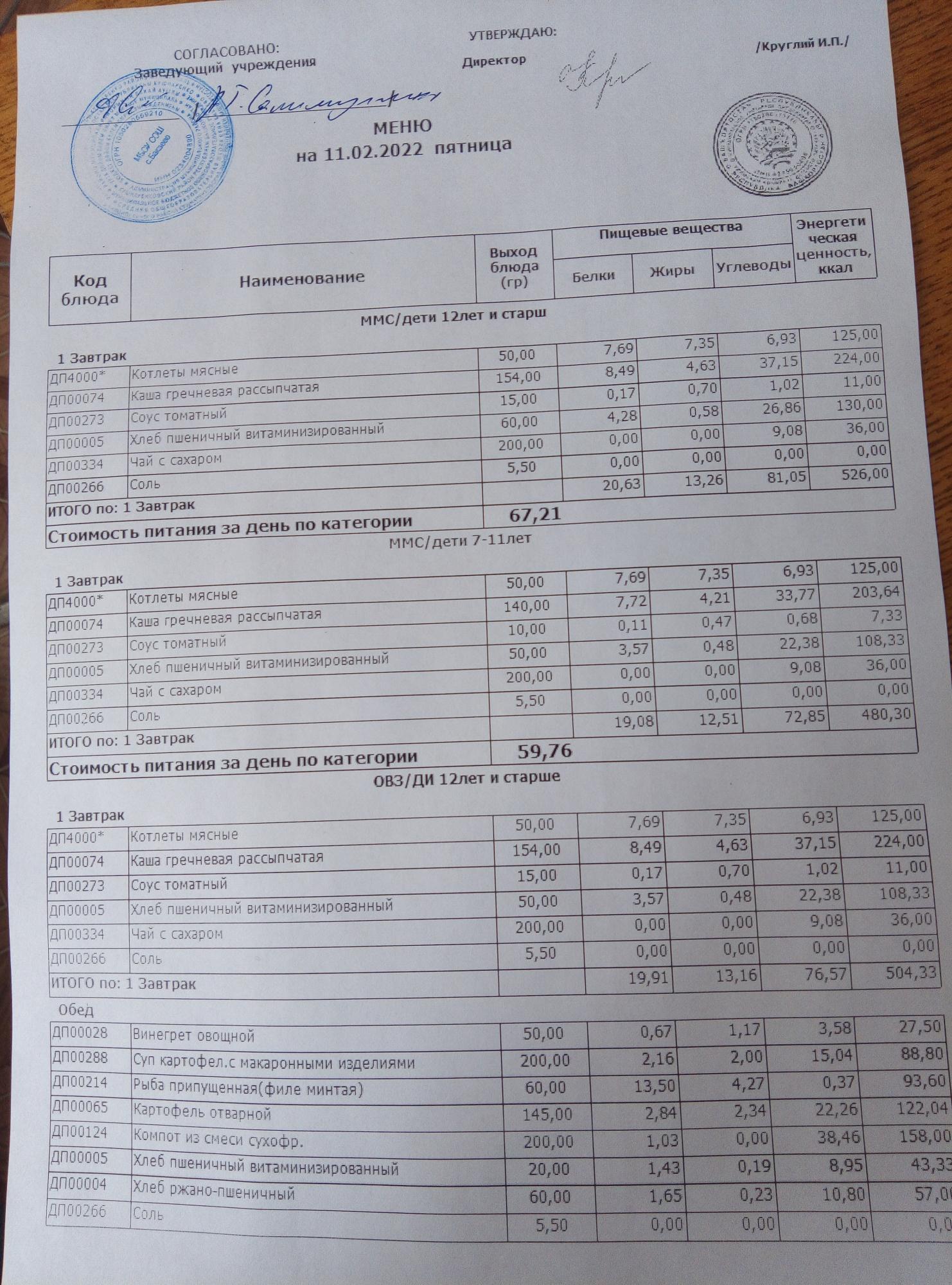 (Меню на 11.02.2022г)