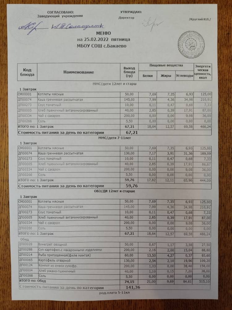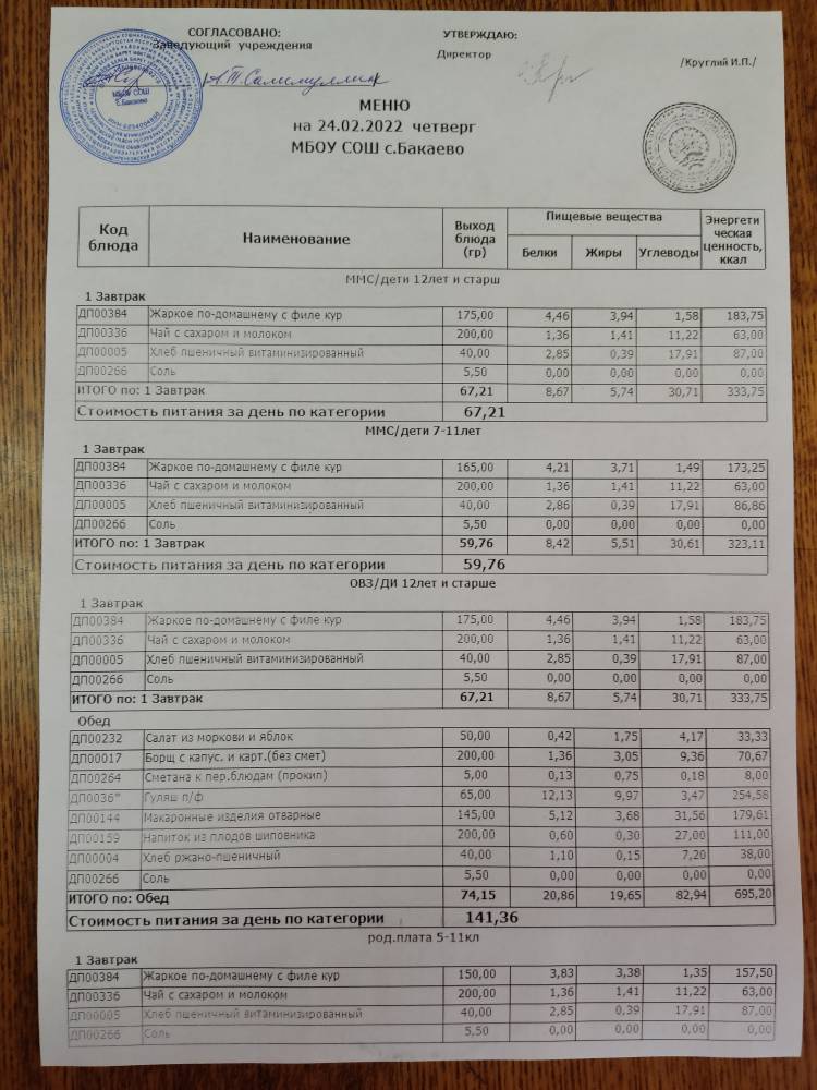 (Меню на 24.02.2022г)