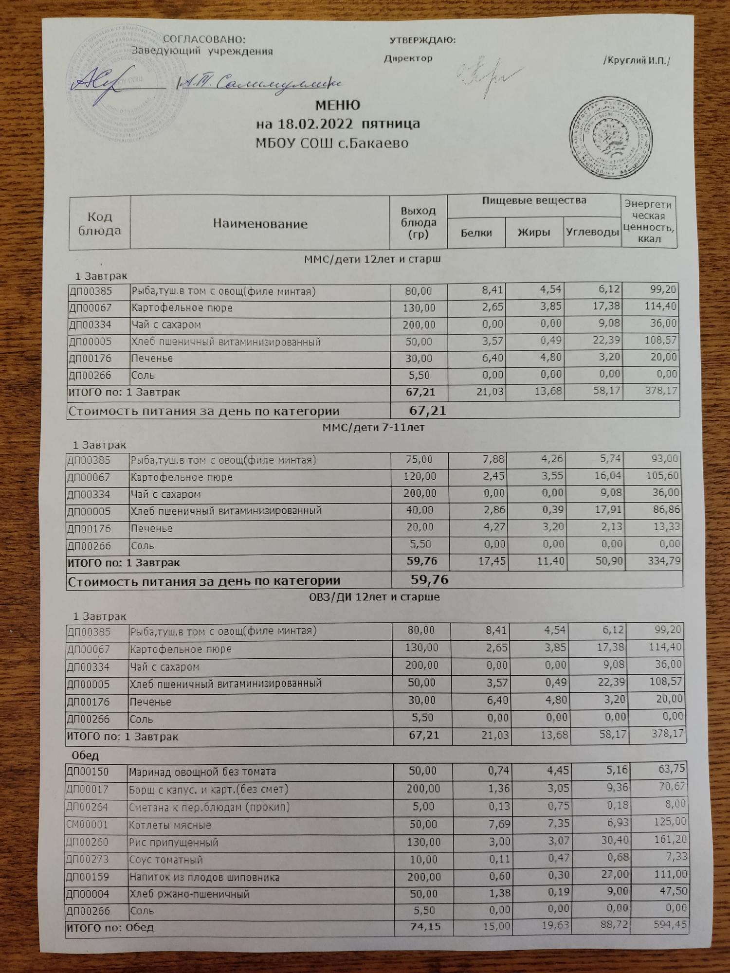 (Меню на 18.02.2022г)