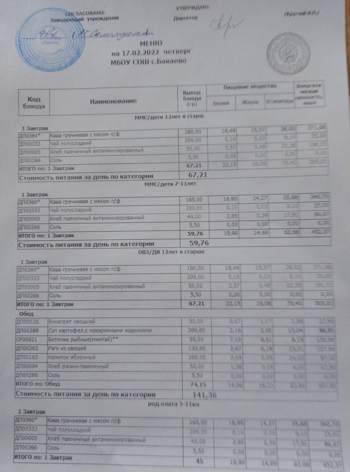 (Меню на 17.02.2022г)