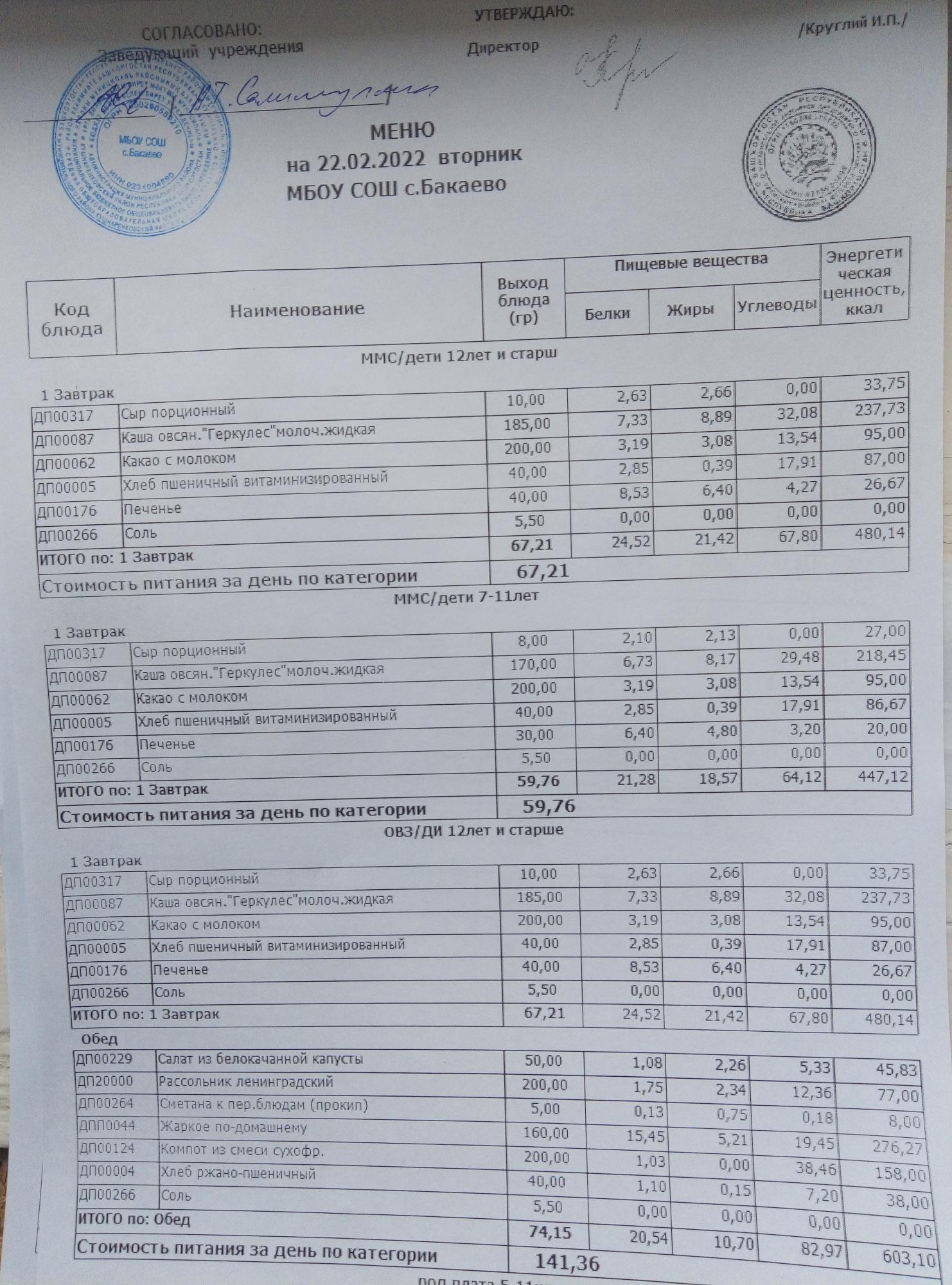 (Меню на 22.02.2022г)