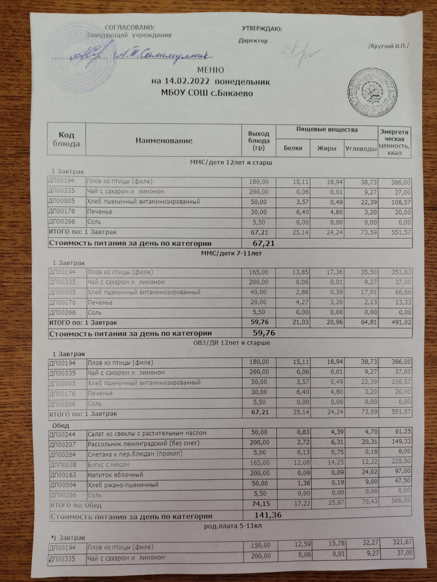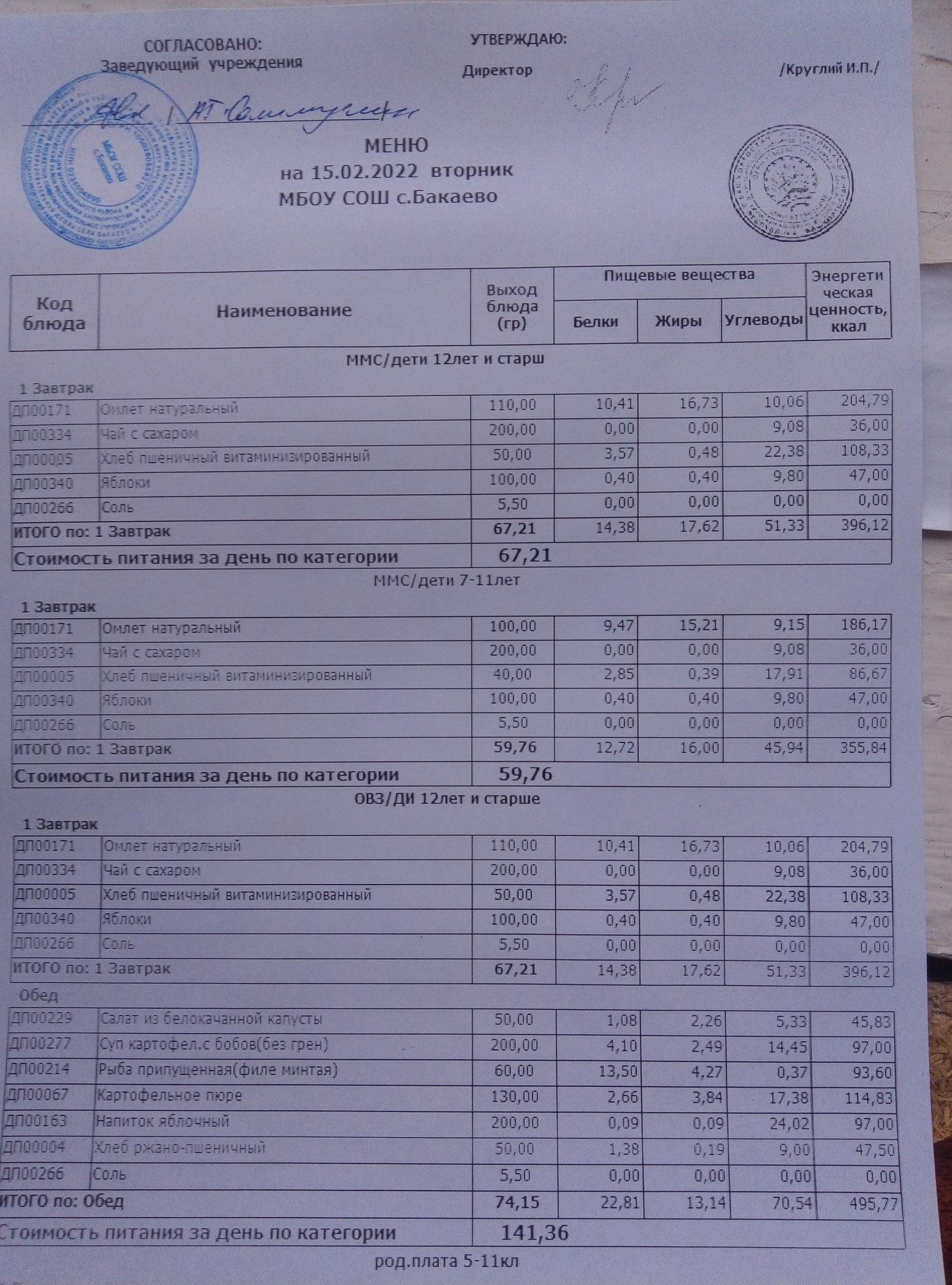 (Меню на 15.02.2022г)