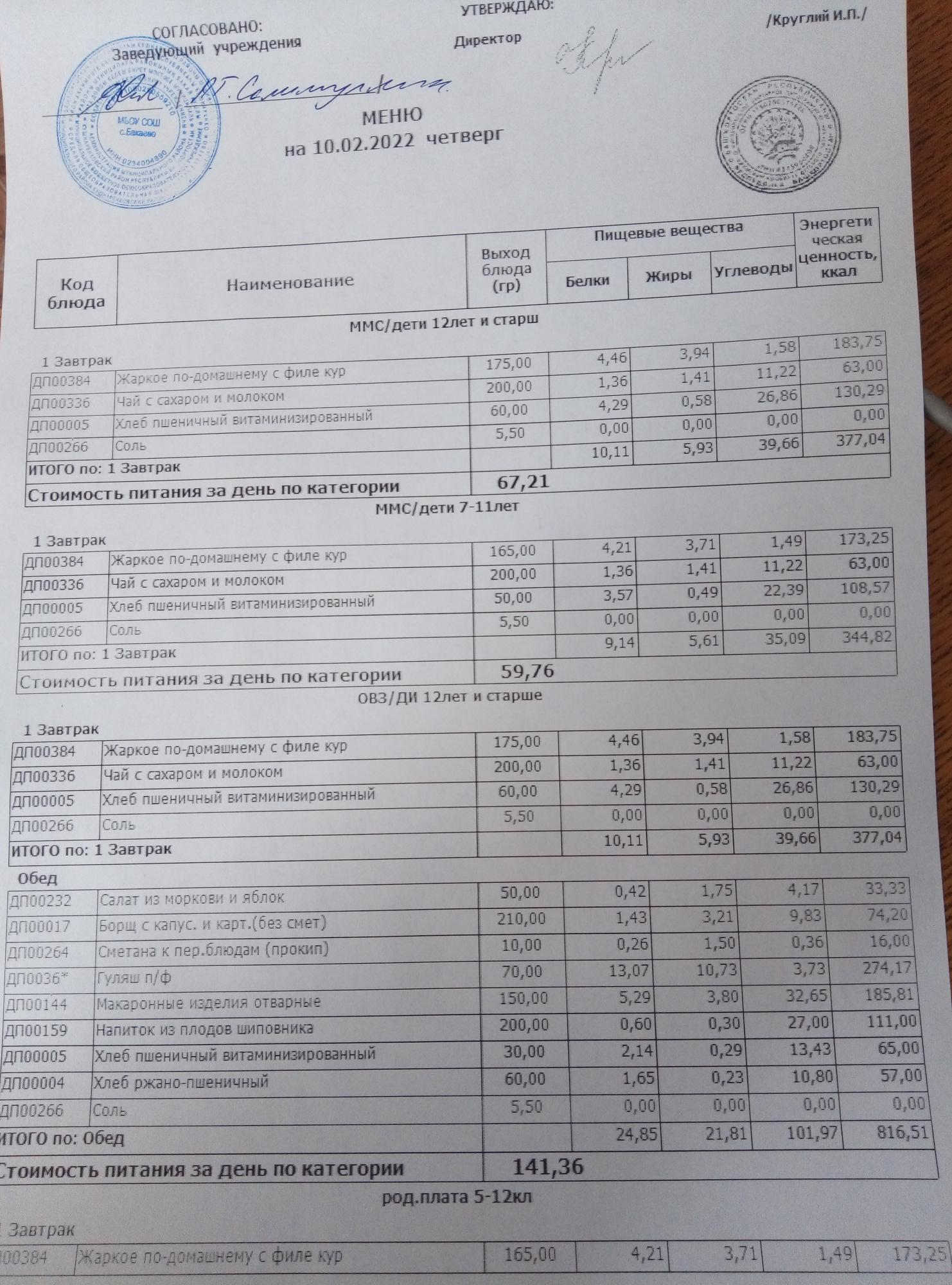 (Меню на 10.02.2022г)