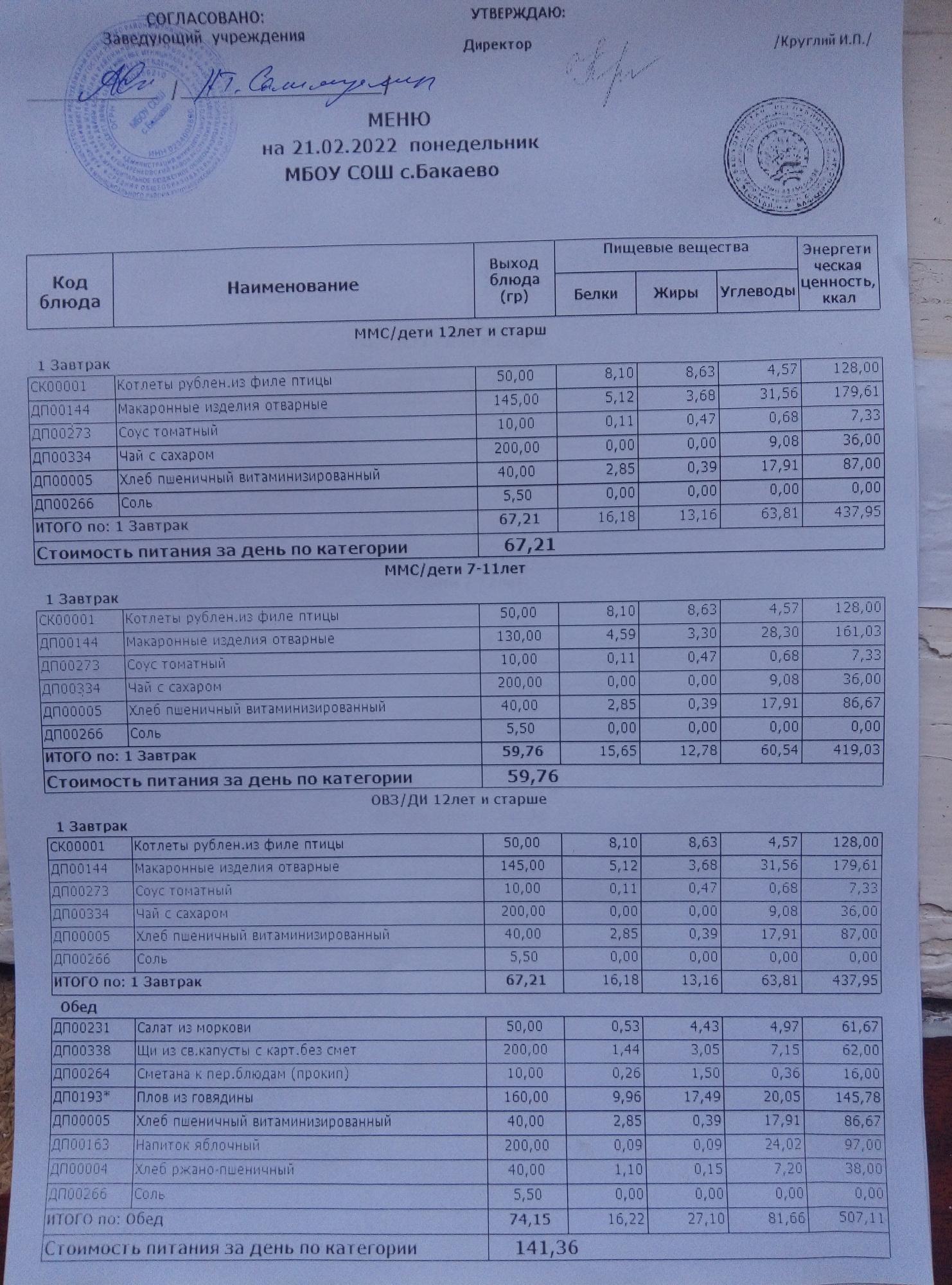 (Меню на 21.02.2022г)